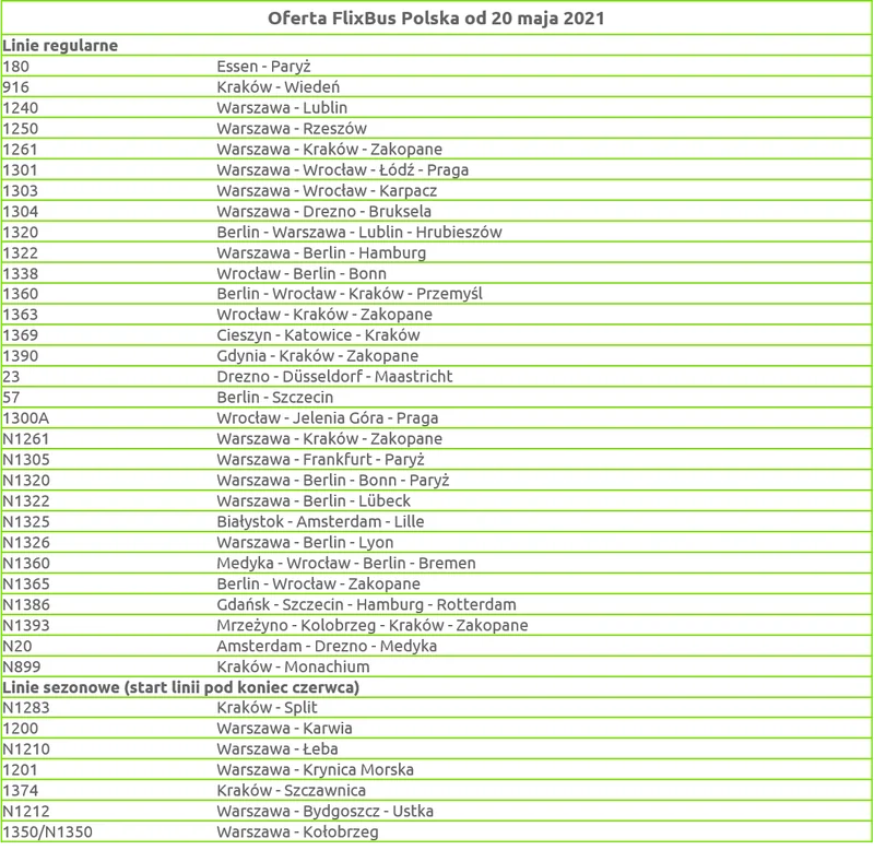 Як пояснив Міхал Леман, директор компанії Flixbus в Польщі, Україні та Балтійських країнах, відновленню мережі внутрішніх та міжнародних рейсів компанії посприяло не лише послаблення карантину в Польщі, а також успішна кампанія з вакцинації населення, але й збільшення попиту на автобусні поїздки.